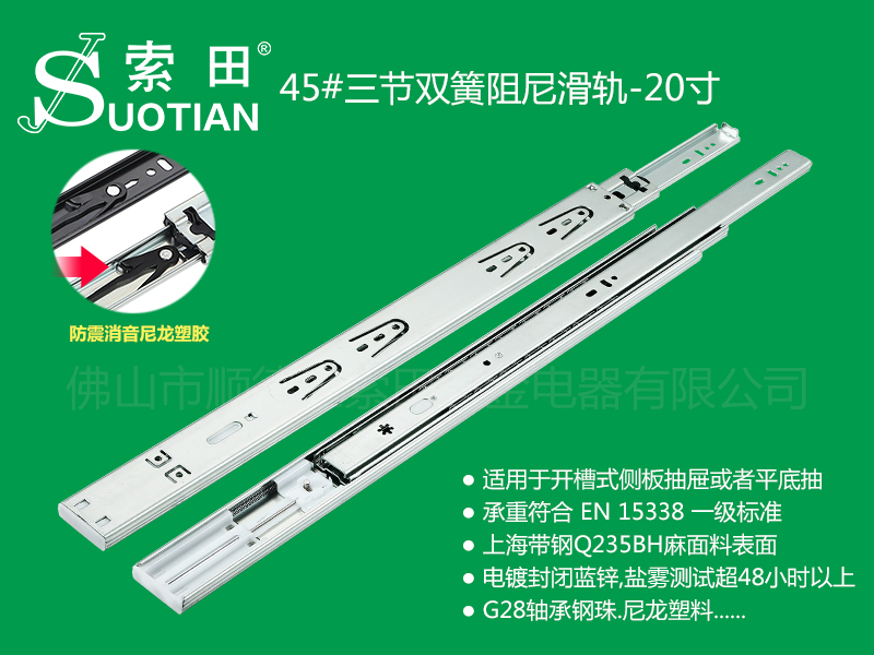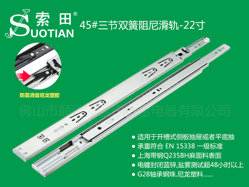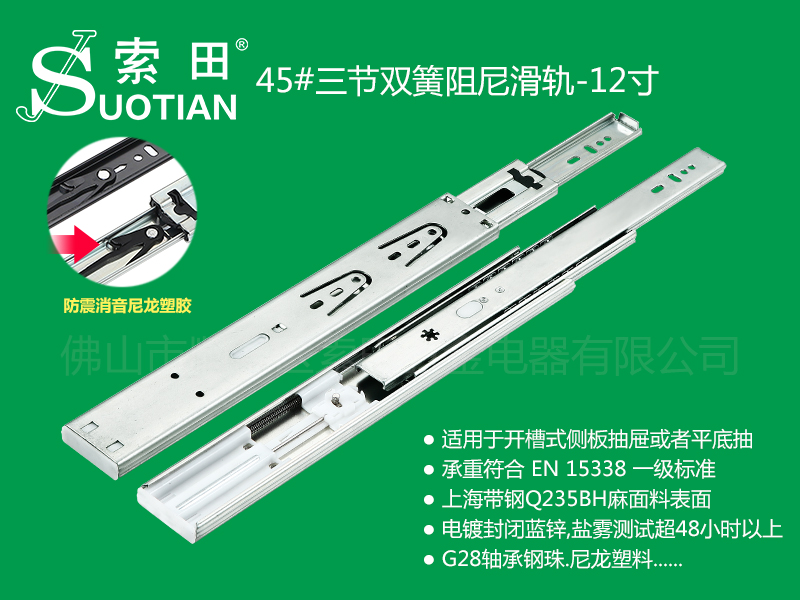 ST静音三节双簧阻尼滑轨