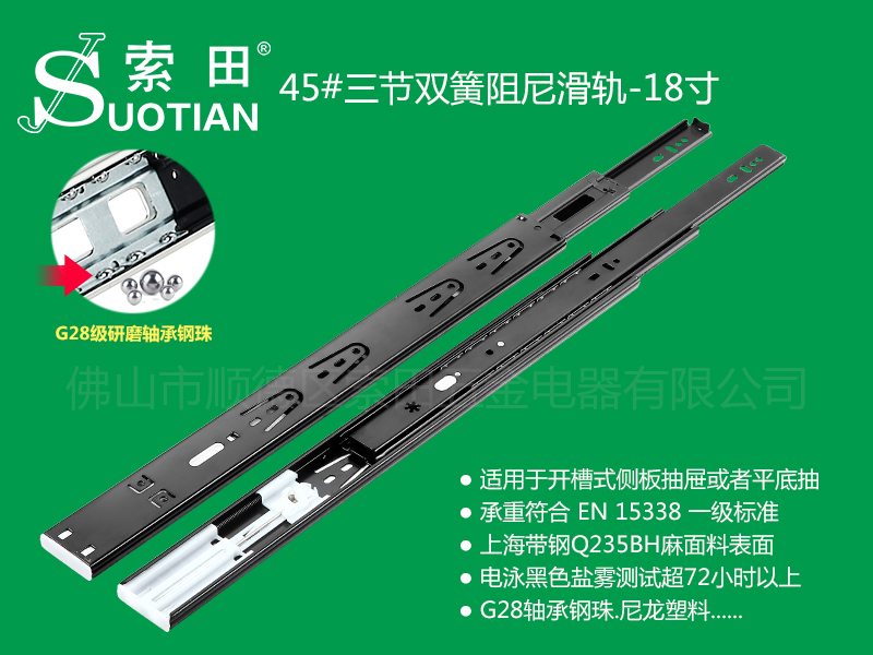 ST4512/4515三节双簧阻尼滑轨-18寸黑