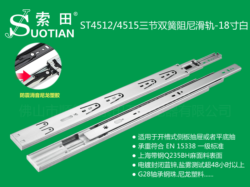 ST4512/4515三节双簧阻尼滑轨-18寸白