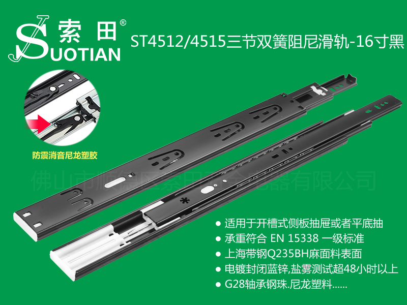 ST45124515三节双簧阻尼滑轨-16寸黑