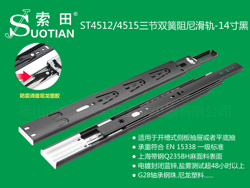 ST4512/4515三节双簧阻尼滑轨-14寸黑
