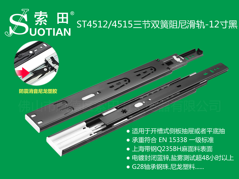 ST4512/4515三节双簧阻尼滑轨-12寸黑
