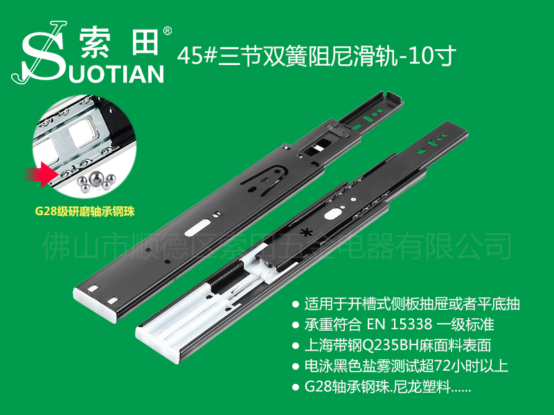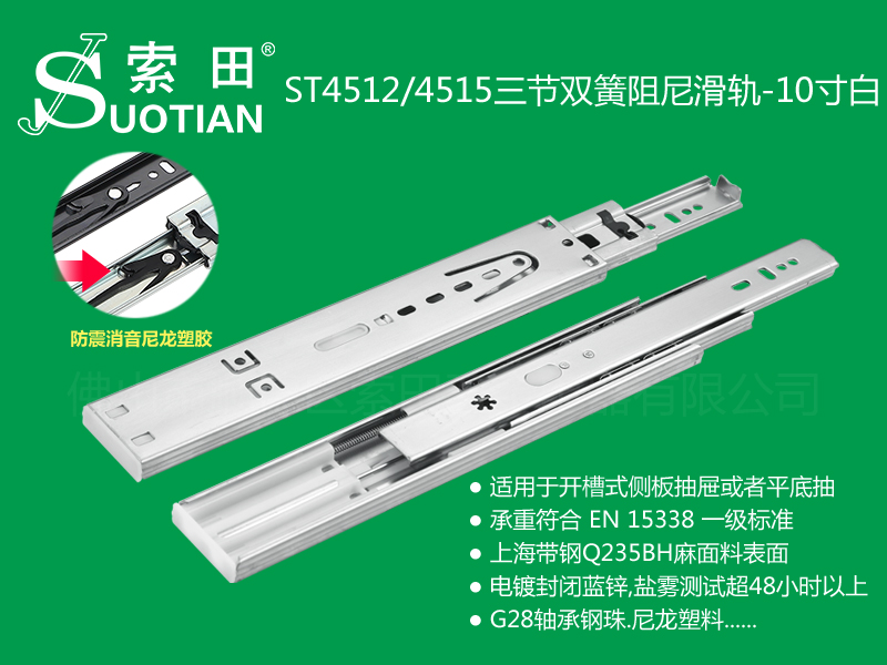 ST4512/4515三节双簧阻尼滑轨-10寸白